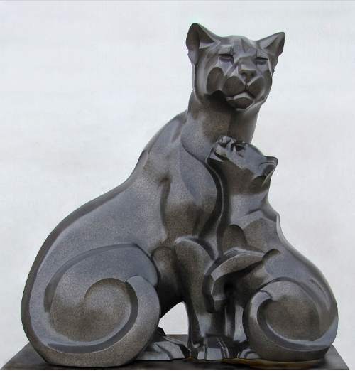 The inspiration for this sculpture was simply the elegant beauty of a relaxed cougar reclining on a graceful fallen tree. But as the title, “Balancing Act”, implies, this cat is faced with more challenges than simply managing to stay perched on that small branch, with the balance of nature disrupted over so much of his range and the fallen tree hinting at the loss of appropriate habitat.