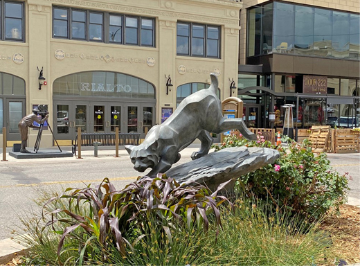 After a year on 4th Street in downtown Loveland as part of The Art Advocacy Project and a few months in our front yard, my large Bobcat sculpture headed off to Brighton for their year-long Sculpture on Loan project. Upon its arrival there, however, the city of Brighton decided to purchase it for their permanent collection! So Brighton will be its forever home, not just a year’s vacation spot!